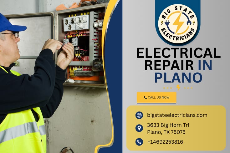 ⚡Need Electrical Repair in Plano? Big State Electricians-Plano provides reliable residential & commercial repairs, panel upgrades, lighting, EV chargers & emergency service!🏡